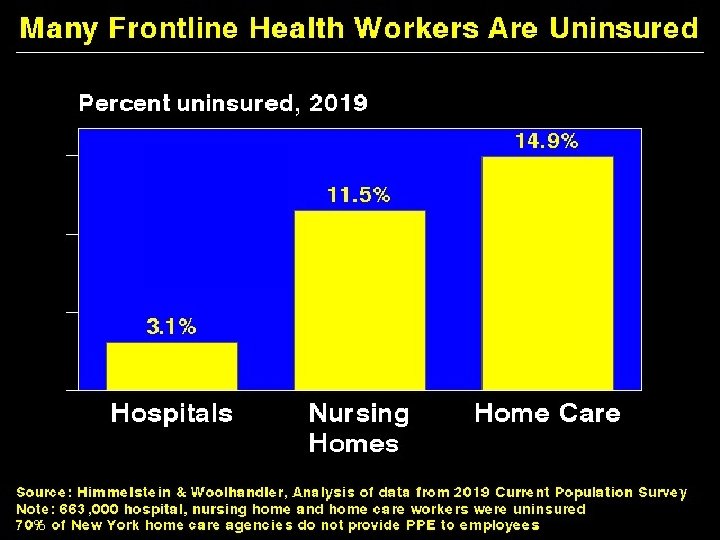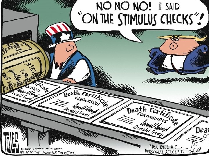 Legislative Steps on COVID -19 n n n n Free coronavirus tests Some insurers waive deductibles/copays for innetwork treatment Modest extra federal Medicaid $s to states Extra Medicare $s to hospitals, especially most profitable ones Mandated 2 wks sick pay – big employers exempt $600 boost to unemployment checks (expires 7/31) Bailout funds to corporations and small businesses $1200 stimulus checks (signed by Trump);