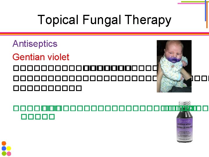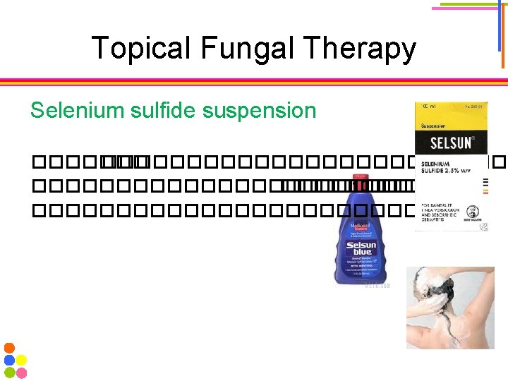 Topical Fungal Therapy Keratolytic agent Whitfield ointment 6%Benzoic acid ���� antifungal 3%Salicylic acid ���� keratolytic �� keratin �����������������������������