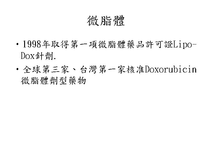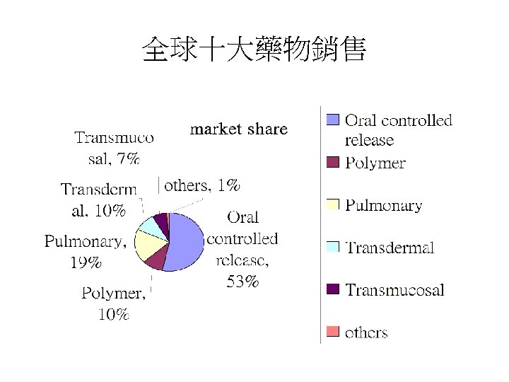 Drug delivery system market • 2002年 worldwide sales: $41. 1 billion • 2007年(e) worldwide sales: $66 billion 資料來源: Front Line Strategic Consulting, Inc.