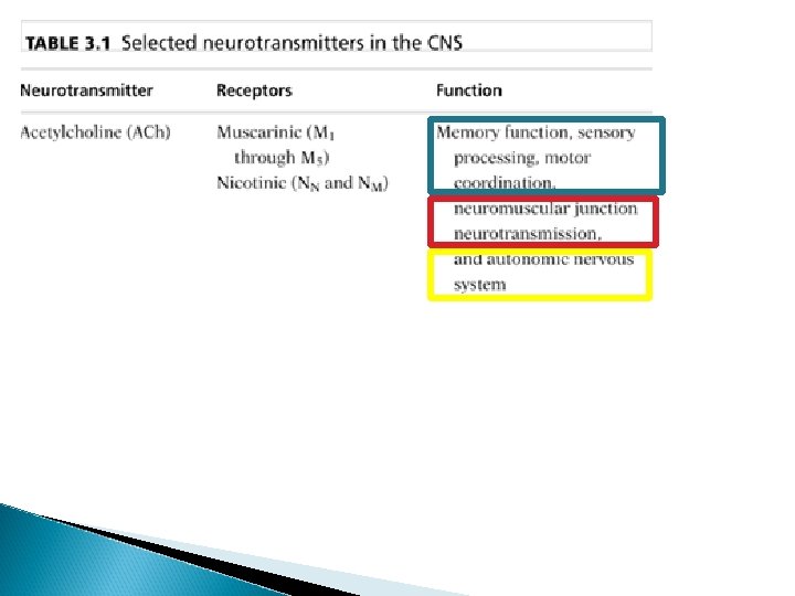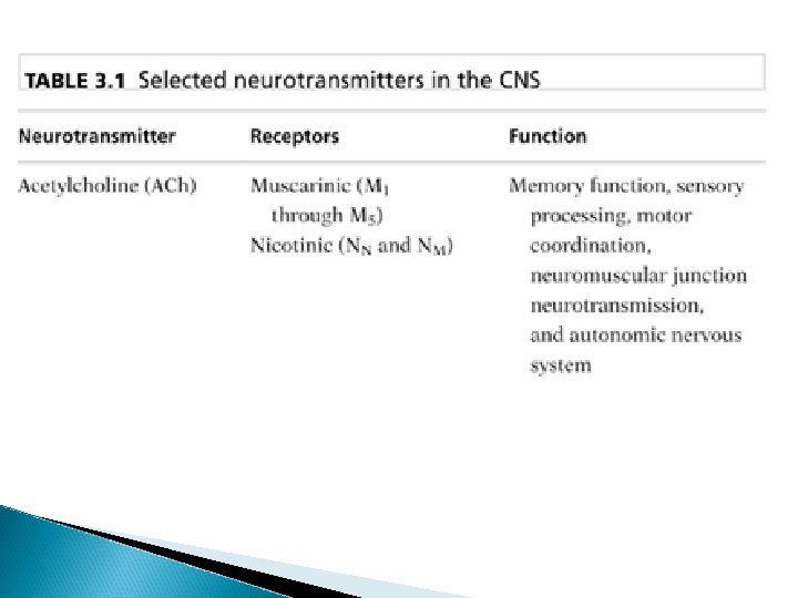 Neurotransmitters and Receptors Inactivation: ◦ Acetylcholinesterase (ACh. E) ◦ After action in postsynaptic cleft, ACh. E degrades ACh to choline and acetate, which are taken back up into the neuron.