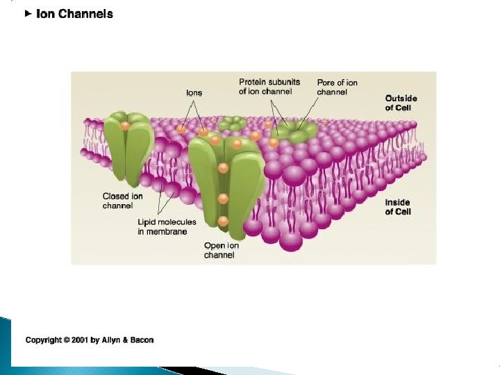What causes these changes in electrical potential and the action potential? All axons and cells have a membrane thin lipid (fat) bilayer The membranes have channels (to allow ions in or out) Ions – molecules with a charge These channels can be open or shut
