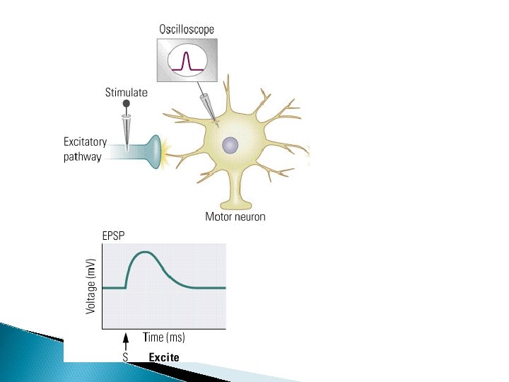 EPSPs – excitatory postsynaptic potentials opening of local Na+ channels IPSPs – inhibitory postsynaptic potentials