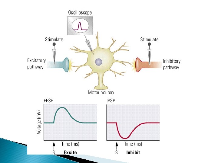 ◦ IPSPs – inhibitory postsynaptic potentials • decreases the liklihood of an action potential opening of