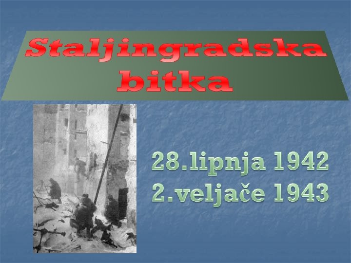 n Staljingrad je imao veliko strateško značenje jer je Volga bila važan opskrbni put SSSR-a n Staljin je naredio da svi koji mogu držati pušku moraju braniti grad