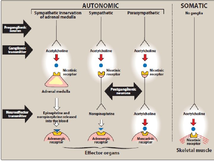 OVERVIEW �Drugs affecting the autonomic nervous system (ANS) are divided into two groups according to the type of neuron involved in their mechanism of action. v. The cholinergic drugs, which are activated by acetylcholine (ACh). v. The adrenergic drugs act stimulated by norepinephrine or epinephrine.