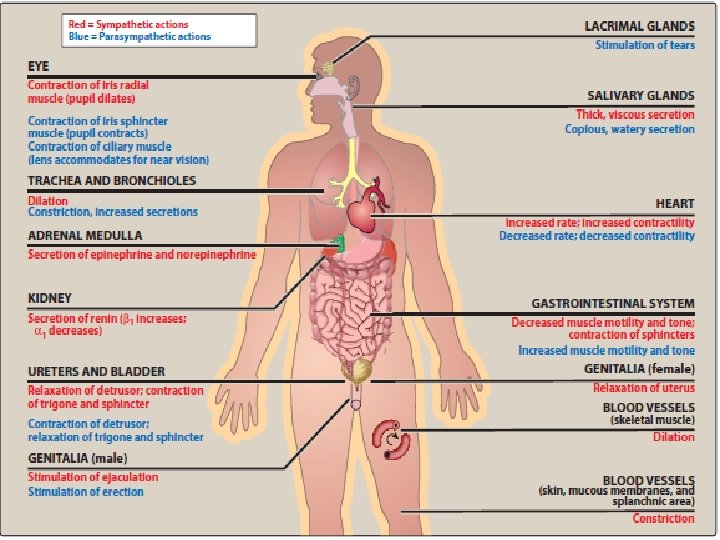 CLINICAL RELEVANCE FOR REHABILITATION �Adverse Drug Reactions �Shortness of breath and altered heart rate may both occur with cholinergic agonists. �It may increase blood pressure and possibly resulting cardiac arrhythmias. �Cholinergic agonists can decrease visual acuity by preventing pupillary dilation in response to decreased light. �Antimuscarinics can cause sedation and decrease cognitive function.