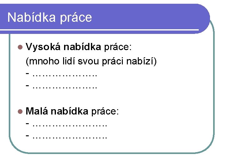 Pracovní trh l Práce je zvláštním …………… l Na trhu práce lidé svoji práci nabízejí a jiní ji od nich ………. . , a to za m……. .