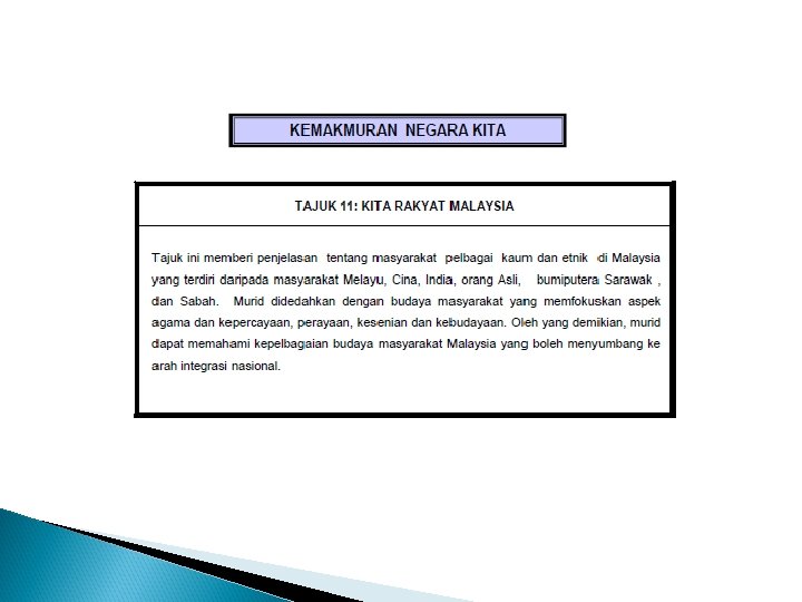Bil Dimensi Kewarganegaraan 2 Perkongsian Nilai Mengamalkan sikap dan perlakuan yang berhemah. Ciri-ciri kewarganegaraan Elemen Kewarganegaraan dan Nilai Sivik Mengamalkan sikap dan perlakuan yang berhemah. Menyanjungi prinsip Rukun Negara. Menghormati kepelbagaian agama dan budaya Berbangga dengan lambang dan simbol negara