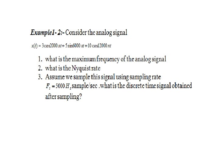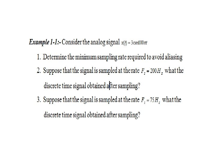 Sampling of analog signal This is the conversion of a continuous-time signal into discrete -time signal obtained by taking samples of the continuoustime signal at discrete-time instant