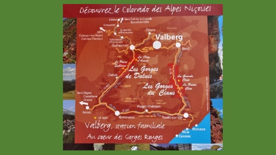 Depuis Puget Théniers, bourg pittoresque, un circuit avec les gorges de Cians et de Daluis et, les villages de Guillaumes – Beuil - Roubion et Valberg et vues depuis la Cime Bonette. Clichés du Net.
