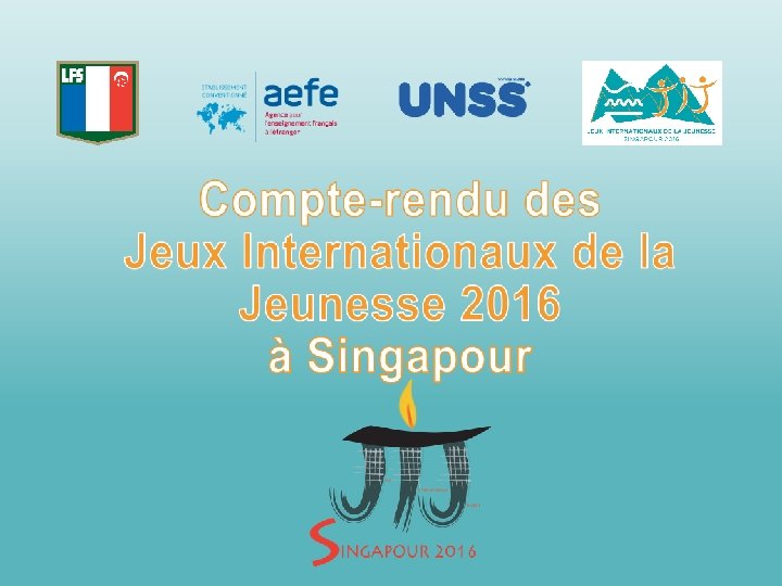 Organisation L’organisation des JIJ 2016 s’est faite autour d’un comité de pilotage géré par le Pôle communication du Lycée Français de Singapour, par M. Jean-Marc Oziol, professeur d’EPS et M. Bernard Pujol, Proviseur du Lycée. Ce comité de pilotage était en rapport direct avec les autres départements administratifs du Lycée (Transport, Sécurité, IT, Restauration, Maintenance et Achat) et tous les professeurs d’EPS. L’organisation fut régulièrement communiquée aux responsables de l’AEFE et l’UNSS qui ont suivi étapes par étapes depuis la France toute la mise en place. Le comité de pilotage eut en charge la totale responsabilité de la campagne de communication (création de logo, d’affiches, de bannières, fascicules et gestion du site web officiel, etc…) de la restauration, de la gestion informatique, de la logistique et du planning de ces jeux que ce soit au sein même du Lycée ainsi qu’à l’extérieur pour la partie hébergement, transport et sécurité. De nombreux bénévoles ont aussi participé à cette semaine apportant leur aide aux activités et à l’accueil de tous les participants. Hormis cette organisation préalable, ce fut la totalité du personnel du Lycée Français de Singapour qui fut sollicitée. Tous les professeurs ont retransmis aux élèves les valeurs des JIJ pour qu’ils puissent au mieux assister à toutes les activités et créer l’échange avec les sportifs venus rendre visite.