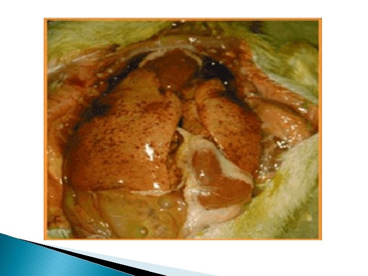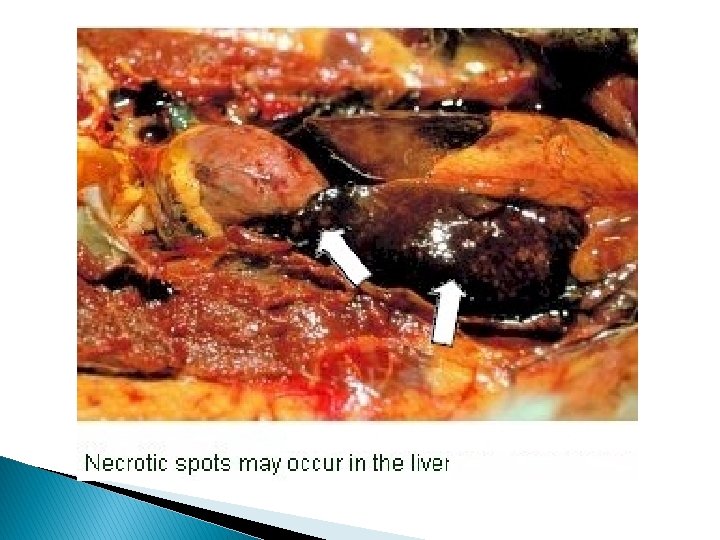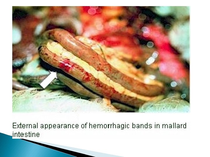 Post Mortem Lesions: � The liver is enlarged and covered with ecchymotic or punctuate hemorrhages. � The spleen may be enlarged and mottled. � Kidneys may be swollen, and renal blood vessels congested. � Morbidity is 100 % and mortality in 1 week old may reach 95 % and in 1 -3 weeks old may reach 50 %.