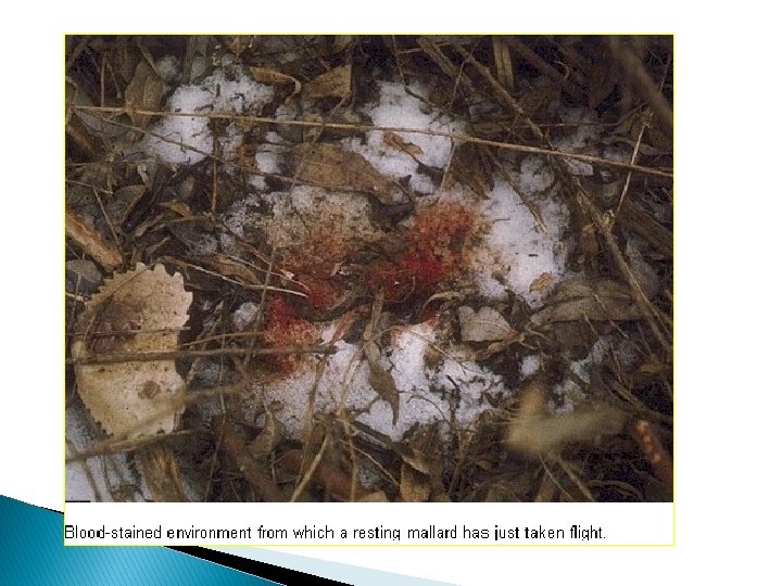 Blood-stained ice from the nasal discharge of a wild duck dying from duck plague