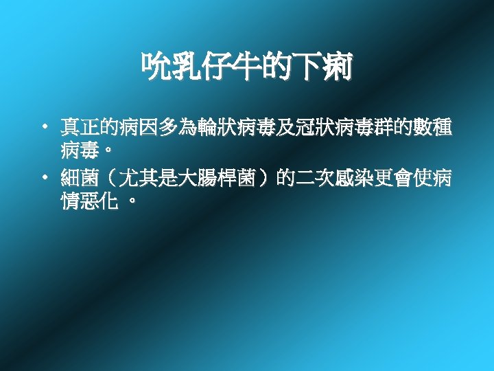 吮乳仔牛的下痢 E. Coli Rotavirus Coronavirus