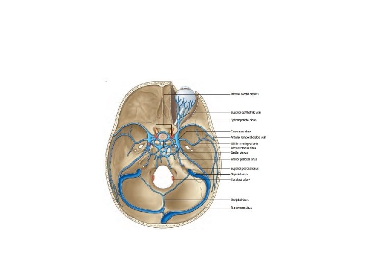 Superior and inferior petrosal sinuses • Petrous part of temporal bone • Sup. petrosal sinus drains the cavernous sinus into transverse sinus • Inf. petrosal sinus drains the cavernous sinus into IJV
