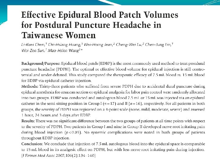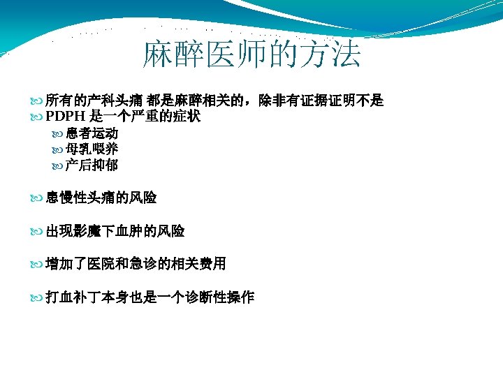 Oops – I just wet-tapped her with a Tuohy. . . Wet tap - 1% 为最佳状态 PDPH > 50% 无脑脊液回流 – 仍有可能发生PDPH