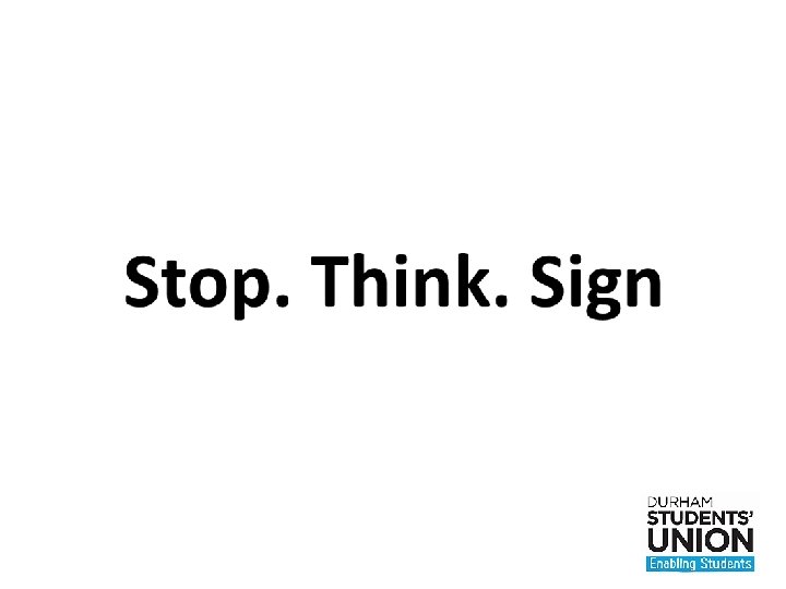 Stop. Think. Sign For more information contact Durham Students' Union Advice and Help Centre http: //www. durhamsu. com/main-menu/advice-andhelp/advice-and-help-service