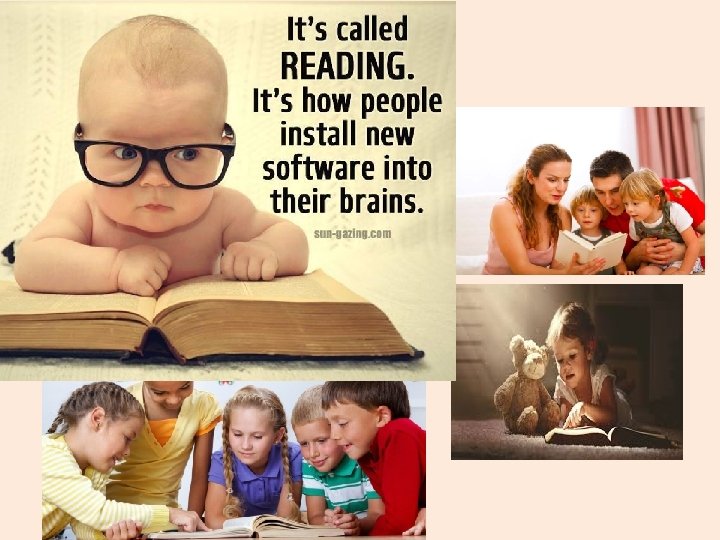 Did you know? • • • Children who read and share books everyday are more likely to become good readers. Children need to know why they need to read. Children who belong to a library and choose their own books are more likely to develop a love of books. The comfort of reading with your child in a cosy place with love encourages good reading. Children who know nursery rhymes are more likely to show interest in reading. Children who see their parents reading at home are more likely to read.