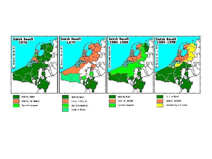 Spanish resurgence • Alva replaced by Don Juan, who is replaced by the Duke of Parma • Collapse of finances in 1575 leads to mutiny and “Spanish fury” • Nevertheless, Spain reconquers south between 1579 -1585 • William the Silent assassinated by a Catholic in the spring of 1581