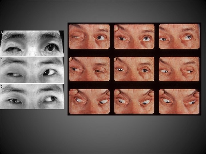 ORBİTA İÇİNDE YERLEŞİK LEZYON SPEKTRUMU Travma Orbita kaidesi kırıkları Tümör İnfeksiyöz-inflamatuvar + II + Vizyon kaybı + Proptozis + Kemozis + Kapak ödemi Sinir-Kas bileşeği Miyastenia Gravis Sinirin seyri boyunca herhangi bir seviye Diyabet, hipertansiyon, ateroskleroz, kollagen vasküler hastalıklar, para- veya postinfeksiyöz vaskülopatiler, migren, Lenfoma
