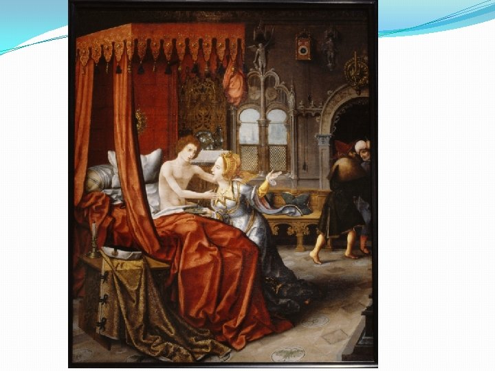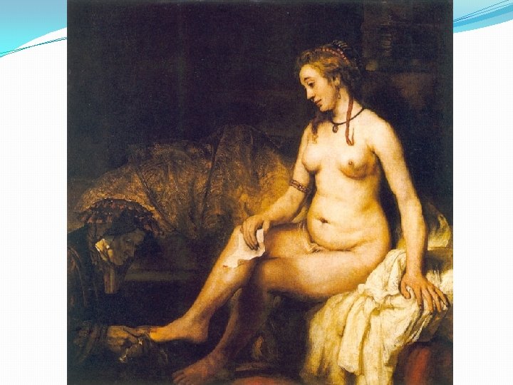 Dávid és Betsabe – 1. – 2 Sám 11 -12 �Ki a csábító, avagy hol fürdik egy szolid nő? �Menstruáció utáni fürdés és az apaság. �A gyávaság spirálja: �A férj hazahívása, leitatása, megvesztegetése. �A férj meggyilkoltatása. �A büntetés (? ): �Meghal a gyerek. �Salamon tisztára mosása?