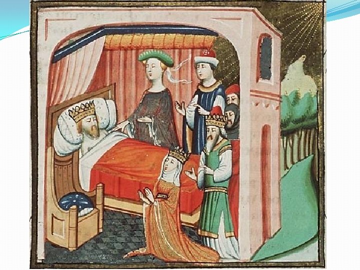 Dávid és Mikál � 1 Sám 18: �Saul Dávidhoz adja a lányát – fura mátkapénz: 25 + 27. vers �Menekülés az ablakon át: � 1 Sám 19, 11 -13 �Az elhidegülés: � 1 Sám 6, 14 -16: egy király ne ugrándozzon �Nincs közeledés, nincs közös gyerek felháborodásból… �De: ez a gyerek Saul unokája lenne…