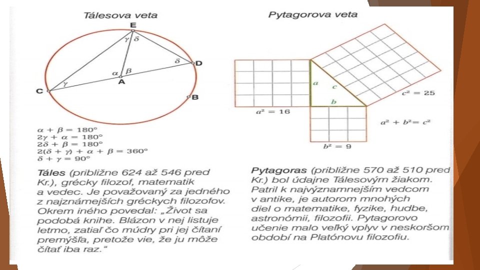 Rozvoj vedy a vzdelania V antickom Grécku žilo v tomto období mnoho vedcov, ktorí rozvíjali prírodné vedy. Preberali aj poznatky iných národov, tie v mnohých prípadoch zdokonalili. K najvýznamnejším vedcom patrili Táles a Pytagoras.