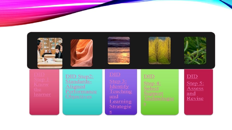 WHAT IS THE “DID” MODEL? The Dynamic Instructional Design model simplifies the design process and ensures that no step is missed while providing a framework for quality, technology-rich instruction. It provides a practical guide for conceptualizing and designing an effective instructional unit. This is the Dynamic Instructional Design Model.