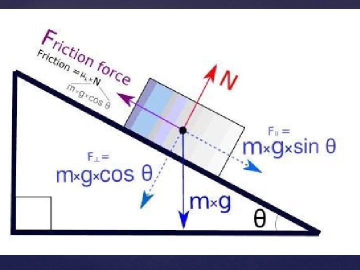 As the angle of an incline increases The normal force decreases The force from gravity down the incline increases The force from gravity into the incline decreases The frictional force decreases Inclined Plane