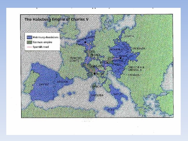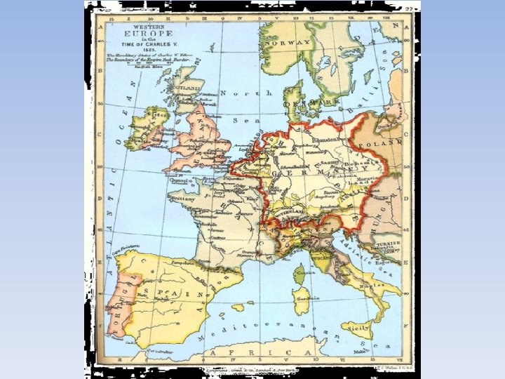 • However, Charles V was being threatened on all sides and couldn’t afford a war in France. • Protestants and Princes threatened in the HRE (German lands), the Ottoman Turks threatened him in the HRE (Austria/Hungary lands) • His goal was to reach an agreement with the captured Francis I, but his agreement led to 30 more years of war. – – – Burgundy had to be returned to Spain France had to recognize Spanish rule in Naples. France had to recognize Spanish conquest of Navarre Francis I had to marry Charles V’s sister Francis I had to leave his 7 and 8 year old sons as hostage with Charles V. This was called the Treaty of Madrid