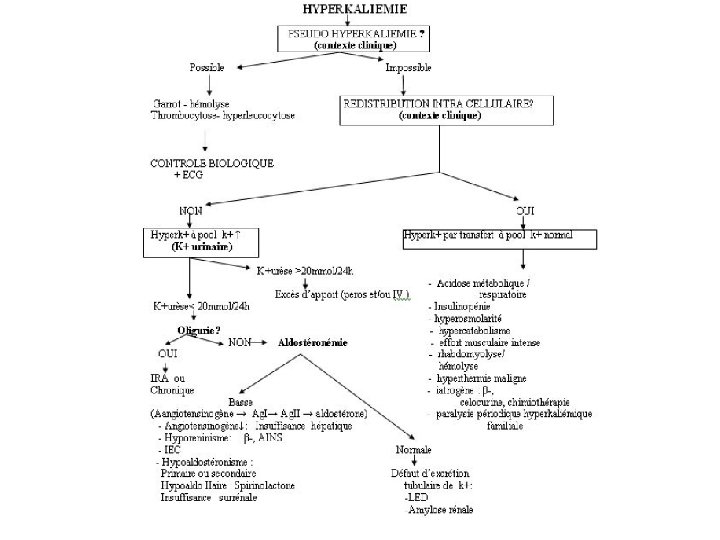 Etiologies • Erreurs de prélevement • Excès d’apport • Défaut d’élimination rénale: IRA et IRC, hypoaldostéronisme 1 ou 2 re, Insuffisance surrénaliènne, IEC, ARA II • Par transfert: acidose, insulinopénie, hyperosmolarité, hémolyse, hypercatabolisme, rhabdomyolyse, iatrogène (BB, chimiothérapie)
