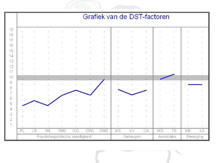 4. Lichamelijke stabiliteit • Evenwicht + controle oogbewegingen • Evenwichtstester + blinddoek (duwtje rug) • Score: 0 -6 (6= verliest evenwicht) Dyslexia Screening Test