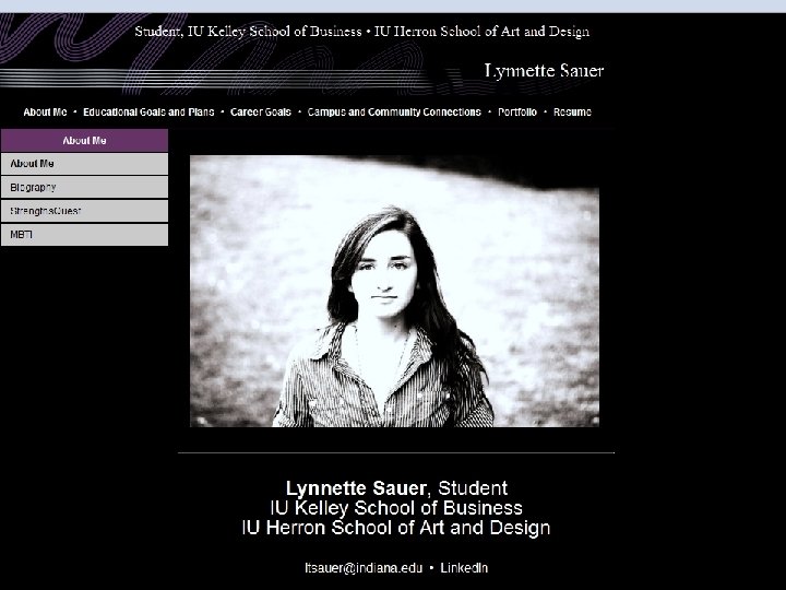 What goes into an e. Portfolio? • Examples of work in multiple media (showing development or “best work”) • Resumes • Plans and goals • Reflections (usually written) • Recommendations and evaluations
