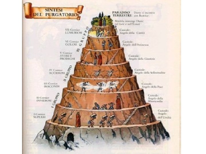 • Origine • Struttura: 7 vizi capitali (classficazione cristiana – Cassiano, G. Magno, S. Tommaso) • Ordinamento morale Amore di elezione: libertà Perdono: tendenze peccaminose Regno del passaggio, dolcezza, tempo, coralità