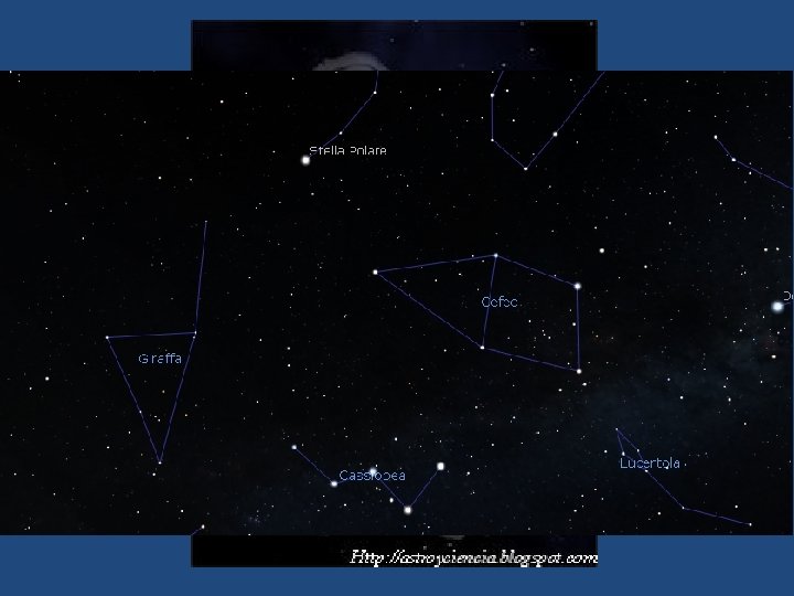 Le costellazioni Gruppi di stelle apparentemente molto vicine che sembrano far parte di immagini. Grazie ai disegni che le stelle formano nel cielo, è più semplice orientarsi Molti popoli hanno immaginato che le stelle fossero disegni divini ed hanno dato alle stelle e alle costellazioni i nomi delle loro divinità Gli astronomi moderni hanno conservato ancora nomi dati dagli antichi greci Gli astronomi però hanno dato anche dei nomi scientifici alle stelle Per ogni costellazione, si indica con alfa, il nome scientifico della stella più luminosa, con beta il nome scientifico della seconda stella più luminosa e così via La alfa ursae maioris è Dubhe; la beta ursae maioris è Merak; La alfa Cassiopeiae è Shedir.