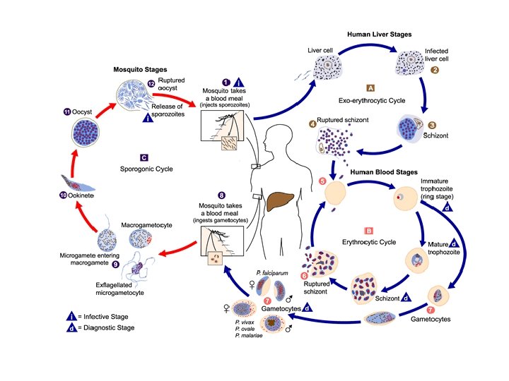 erythrocytic schizogony • 48 hr in Pf, Pv, Po • 72 hr in Pm gametocytes