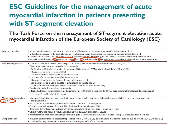 RECOMENDACIONES AL ALTA • Control de TA <140 mm Hg pero no inferior a 110 mm Hg • Control menos estricto de la hiperglicemia durante el ingreso (glicemias entre 90 mg/dl y 200 mg/dl, sin referencia al control óptimo al alta