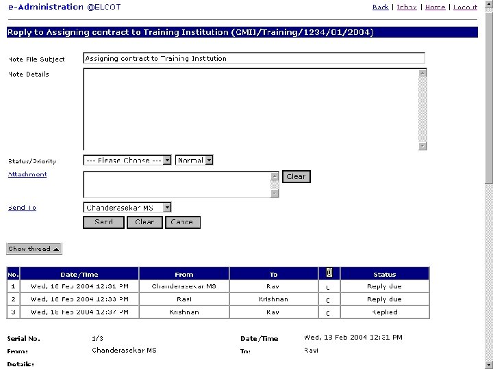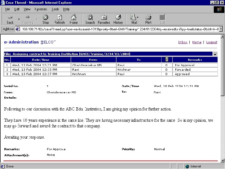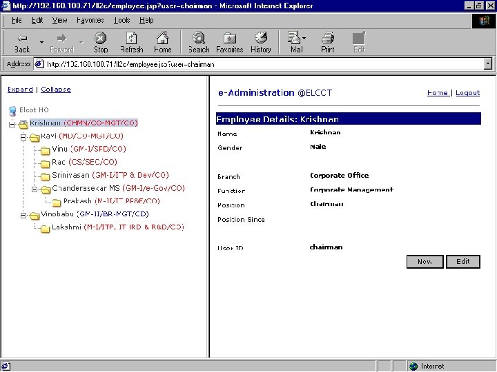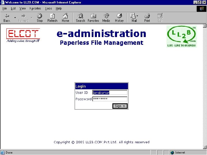 e-Administration Paper-less File Management Security Features • • • Unique User ID & Password Encryption of Password Finger-print authentication Local Digital Signature Hierarchical workflow Audit Trail of all activities