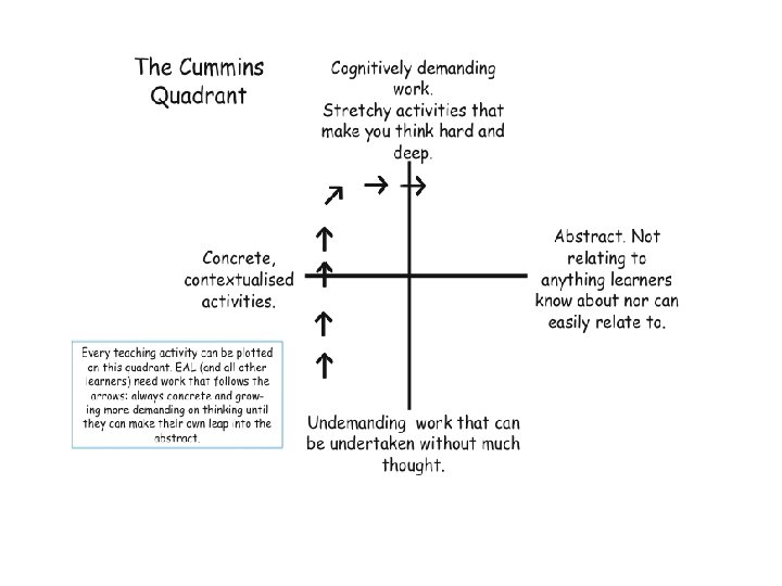 Classroom Practice that is EAL friendly • Build on prior knowledge • Move from concrete to abstract • Ensure everyone works with everyone else • Extend social language into curriculum language • Provide motivating ways to go over the same thing more than once