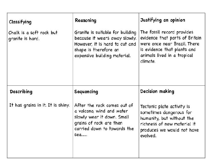 Different thinking needs different visual organisers and different visual organisers generate different language structures. Here is an example from geology.