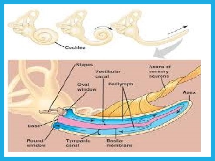 COCHLEAR DUCT • Cochlear duct is the membranous labyrinth within bony spiral cochlea. Inside, from the wall of cochlea two membrane arise vestibular & basilar membrane divides the cochlea into • 1. scala vestibule 2. cochlear duct 3. scala tympany v Two scala contain perilymph and cochlear duct contain endolymph.