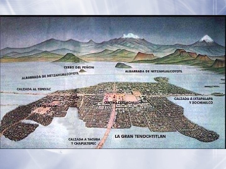Origins Moved into Valley of Mexico-1200’s Established city of Tenochtitlan