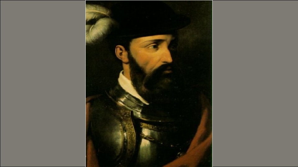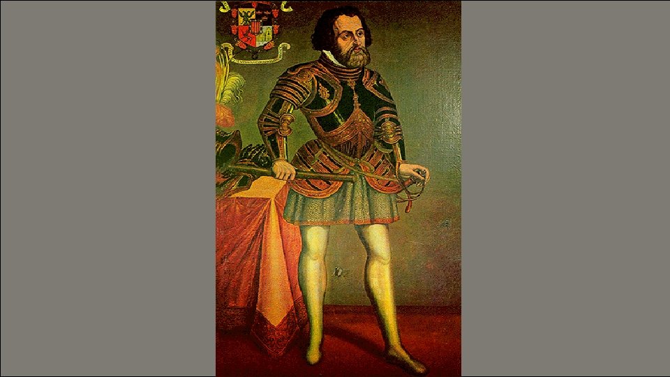 Francisco Pizarro • Pizarro was from the Extremadura. • He was not of noble birth; could not even write his name. • At age 16, Pizarro fled a job herding pigs in Italy. • In 1502, he arrived in the Americas and became very wealthy by exploring Panama. • He heard a rumor that there was a great empire filled with gold in the mountains of South America…