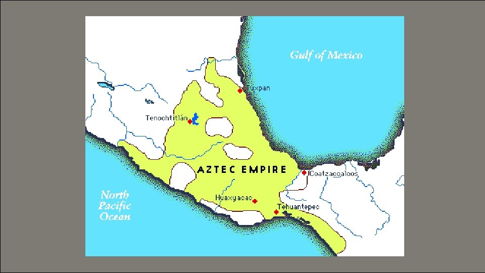 Aztec Civilization • Aztecs arrived in the Valley of Mexico in 1100 s (central Mexico, including present day Mexico City). • They wandered about looking for a home site until 1325. • Aztecs finally settled on an island in the middle of Lake Texcoco. • They built a magnificent city called Tenochtitlan (now Mexico City).