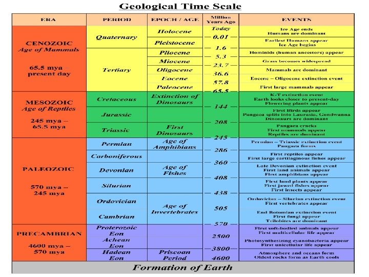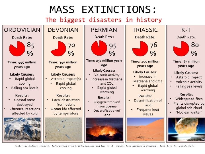 Mass Extinctions • Global warming caused ocean temperatures to rise melting deep sea deposits of frozen methane= 20 x effect of CO 2 green house gas • Global Warming caused ocean circulation patterns to slow or stop decreasing O 2 in water creating “dead zones” • Atmospheric Gases caused Ozone depletion allowing more UV radiation to reach surface • Pangea formed all continents together, large dry interior few shallow coasts • Conditions lasted for 50 thousand years