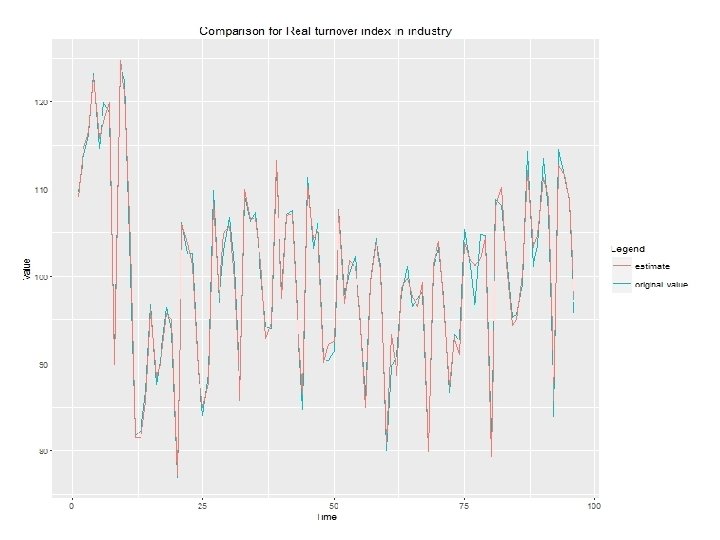 Model (4) • Output: – An estimate for the series of interest‘s last point in time: e. g. 2015 M 12 – Others, e. g. : • Percentage of variability of the data explained by the chosen principal components • Percentage of variability of the time series of interest explained by the chosen linear regression model • Mean absolute error of the chosen linear regression model