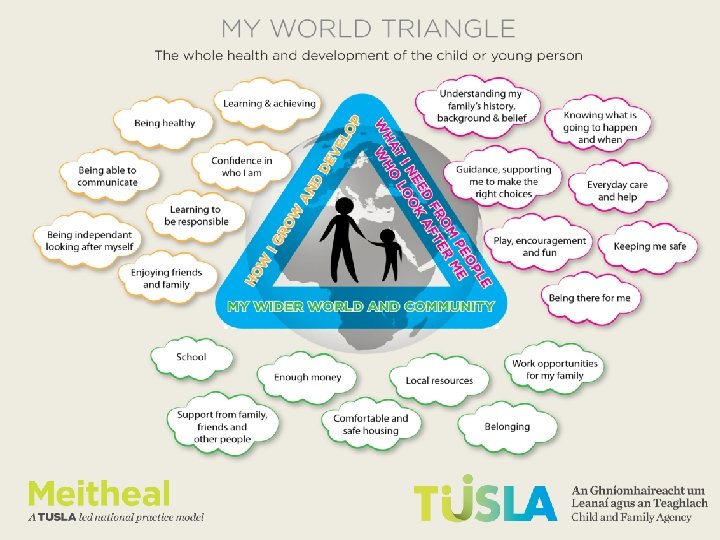 What is Meitheal? Meitheal is a national early intervention practice model to ensure that the needs and strengths of children and their families are effectively identified, understood and responded to in a timely way so that children and families get the help and support needed to improve children’s outcomes and to realise their rights. Meitheal – A National Early Intervention Practice Model for all agencies working with children, young people and their families (2013, p. 1)