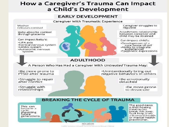 Intergenerational cycle of harm • There is increased awareness of the impact of intergenerational cycle of harm on families and Adverse Childhood Experiences (ACEs). • As the numbers of adverse experiences increase in utero and in the first 2 years of life the risk for negative health outcomes increases and the impact on the child’s developing brain and other biological systems. (Faculty of Public health Medicine).