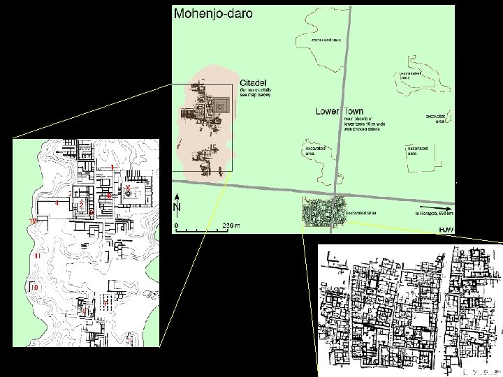 Harappa – Mohenjo-Daro • Two settlements that define apogee of Indus urbanism in mature Harappan period, c. 2600 -1900 BC • Similar urban plans, including planned neighborhoods in a grid pattern, indoor bathrooms connected to sewer system, bathhouses and communal storage facilities, citadels, palaces, temples, etc. • Population >35, 000, with 100 s of smaller farming villages tied to large cities • Significant trading centers, showing evidence of large-scale exchange with Mesopotamia and ancient India