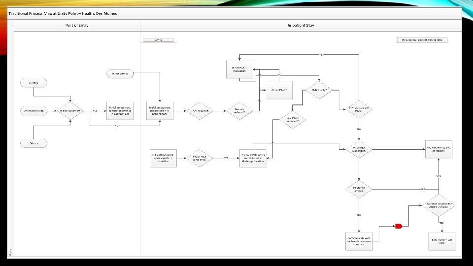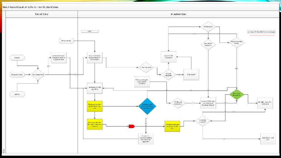 ADVANCED PAC DISCHARGE • New process map showing the advantage of implementing CHAID model removes the extra four days of waiting time and improves patient flow.